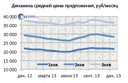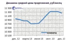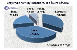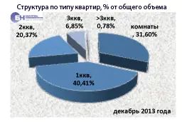 В структуре предложения на рынке аренды типового жилья в декабре 2013 года по-прежнему преобладают комнаты и однокомнатные квартиры, занимая соответственно 31,6 и 40,4% рынка. Двухкомнатные составляют 20,4%, доля трехкомнатных не превышает 6,9%. Многокомнатные (четыре комнаты и более) составляют 0,8% от общего объема типовых квартир, предлагаемых в аренду.
