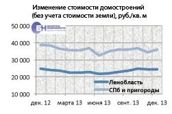 Средняя цена предложения участков (со статусом ИЖС) с домостроениями по Ленобласти на конец декабря 2013 года составила 4,3 млн руб. (из них стоимость участка в отдельности – 1,4 млн руб. и стоимость самой постройки – 2,9 млн руб.). Стоимость участков с постройками в садоводствах в среднем составляет 3,7 млн руб. (из них цена участка – 711 тыс. руб.).