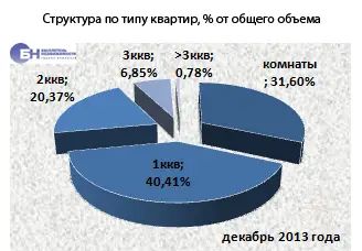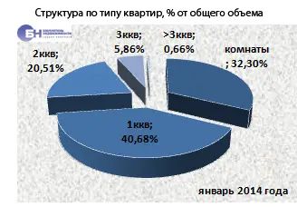 В структуре предложения на рынке аренды типового жилья в январе 2014 года по-прежнему преобладают комнаты и однокомнатные квартиры, занимая соответственно 32,3 и 40,7% рынка. Двухкомнатные составляют 20,5%, доля трехкомнатных не превышает 5,9%. Многокомнатные (четыре комнаты и более) составляют 0,7% от общего объема типовых квартир, предлагаемых в аренду.