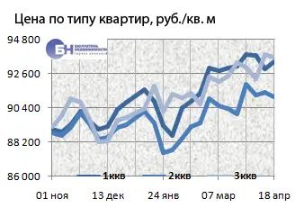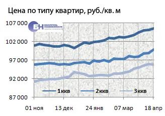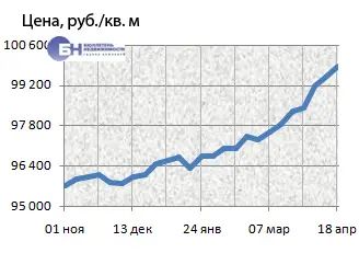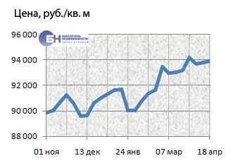 За минувший период изменение средней цены предложения на вторичном рынке квартир в рублевом эквиваленте составило 0,4%, это 347,5 руб. с кв. м. Показатель средней цены предложения за неделю – с 11 апреля по 18 апреля 2014 года – составил 99,9 тыс. руб. за кв. м. Цена предложения в долларах – 2,8 тыс. за кв. м, в евро – 2 тыс.