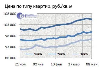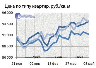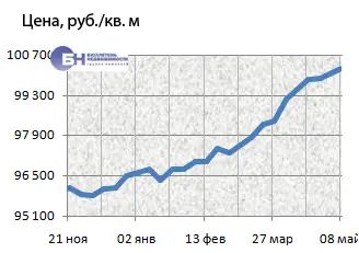 За минувший период изменение средней цены предложения на вторичном рынке квартир в рублевом эквиваленте составило 0,4%, это 363,3 руб. с кв. м. Показатель средней цены предложения с 25 апреля по 08 мая 2014 года составил 100,3 тыс. руб. за кв. м. Цена предложения в долларах – 2,8 тыс. за кв. м, в евро – 2 тыс.