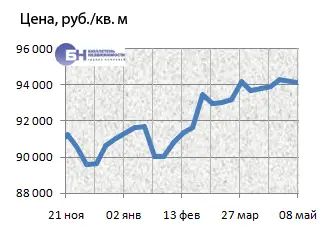 За минувший период изменение средней цены предложения на рынке новостроек в рублевом эквиваленте составило минус 0,2%, это 181,7 руб. с кв. м. Показатель средней цены предложения с 25 апреля по 08 мая 2014 года – 94,1 тыс. руб. за кв. м. Стоимость предложения в долларах – 2,7 тыс. за кв. м, в евро – 1,9 тыс.