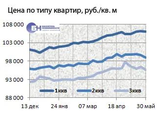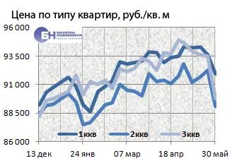 За минувший период изменение средней цены предложения на вторичном рынке квартир в рублевом эквиваленте составило минус 0,6%, это 604,4 руб. с кв. м. Показатель средней цены предложения за неделю – с 23 мая по 30 мая 2014 года – составил 99,7 тыс. руб. за кв. м. Цена предложения в долларах – 2,9 тыс. за кв. м, в евро – 2,1 тыс.