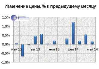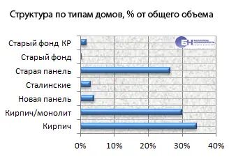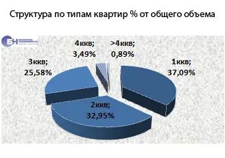 В структуре предложения на вторичном рынке квартир по-прежнему преобладают одно-, двух- и трехкомнатные квартиры, они составили в мае 2014 года 95,6% рынка, многокомнатные (от четырех и более комнат) – в среднем 4,4% от общего объема.