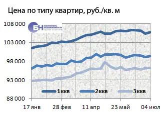 За минувший период изменение средней цены предложения на вторичном рынке квартир в рублевом эквиваленте составило 0,1%, это 87,8 руб. с кв. м. Показатель средней цены предложения за неделю с 27 июня по 04 июля 2014 года составил 100 тыс. руб. за кв. м. Цена предложения в долларах – 2,9 тыс. за кв. м, в евро – 2,1 тыс.