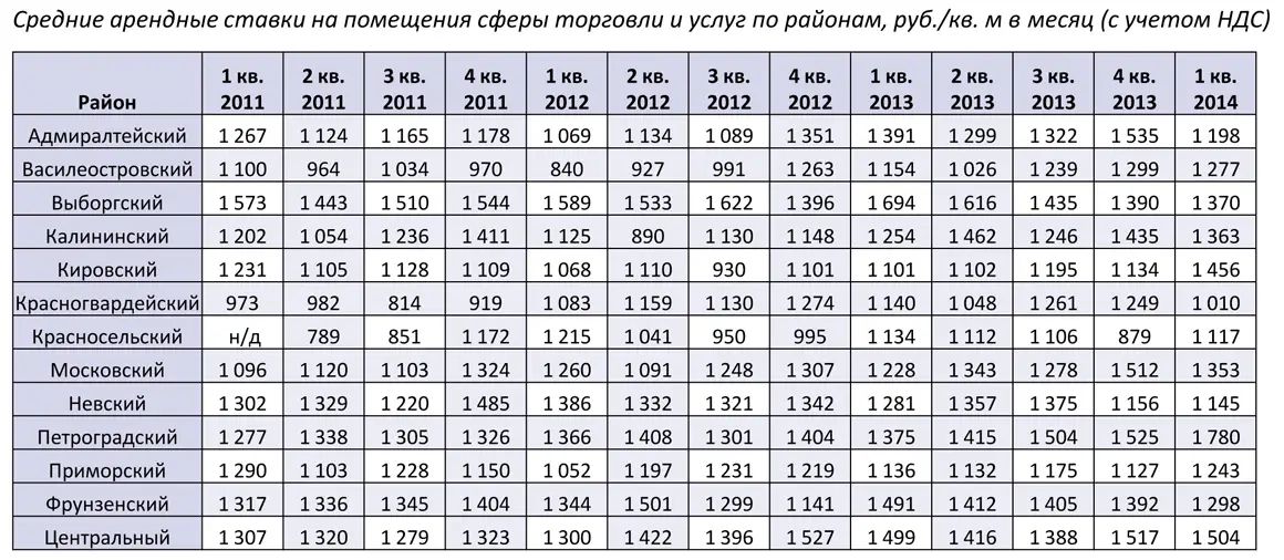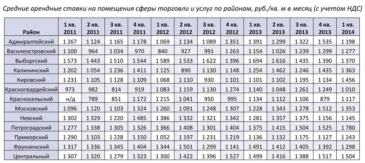 Помимо новых кварталов устойчиво пользуются спросом объекты стрит-ритейла на участке Невского проспекта от пересечения с Малой Морской улицей до площади Восстания. Здесь зафиксированы самые высокие ставки аренды. В период зимы-весны 2014 года размер ставки на этом отрезке составлял 7-12,5 тыс. руб. в месяц (включая НДС и коммунальные услуги). Второе место, с большим отрывом, занимает территория вблизи станции метро «Московская» – 4,5-8 тыс. руб. за кв. м. Для сравнения: в одном из окраинных районов города, вблизи станции метро «Проспект Большевиков», аренда коммерческих помещений на первых этажах стоит всего 1,2-1,4 тыс. руб. за «квадрат». Тенденция сохранится – Невский проспект был и будет оставаться дорогим.