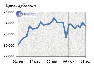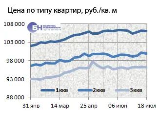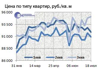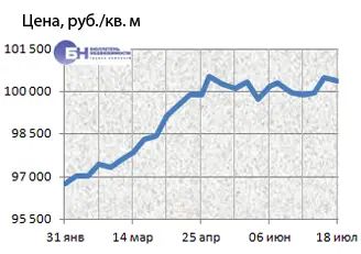 За минувший период изменение средней цены предложения на вторичном рынке квартир в рублевом эквиваленте составило минус 0,1%, это 115,8 руб. с кв. м. Показатель средней цены предложения за неделю с 10 по 18 июля 2014 года составил 100,4 тыс. руб. за кв. м. Цена предложения в долларах – 2,9 тыс. за кв. м, в евро – 2,1 тыс.