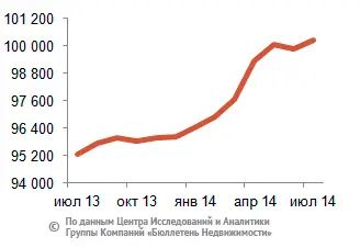 За прошедший месяц самый большой процент изменения средней цены предложения на вторичном рынке показали однокомнатные квартиры в сталинских домах. Изменение составило 5,2%. Самыми дорогими по стоимости квадратного метра по-прежнему являются однокомнатные квартиры в домах старого фонда с капитальным ремонтом – 120,3 тыс. руб. за кв. м (в среднем 5,3 млн руб. за квартиру), без капитального ремонта – 111,9 тыс. руб. за кв. м (в целом это 4,6 млн руб. за объект). Самыми дешевыми вариантами остаются трехкомнатные квартиры группы домов «старая панель»: на конец июля 2014 года средняя цена предложения составила 82,4 тыс. руб. за кв. м (5,2 млн руб. за квартиру).