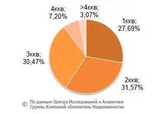 В структуре предложения на вторичном рынке квартир по-прежнему преобладают одно-, двух- и трехкомнатные квартиры, они составили в июле 2014 года 89,7% рынка, многокомнатные – в среднем 10,3% от общего объема
