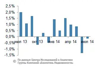 За прошедший месяц на рынке новостроек изменение стоимости одно-, двух- и трехкомнатных квартир в кирпично-монолитных домах составило минус 1,3%, минус 0,2% и 0,6% соответственно. Изменение стоимости квадратного метра в панельных домах по отношению к июню 2014 года составило для однокомнатных квартир – минус 0,02%, для двухкомнатных – 3,2%, для трехкомнатных квартир – минус 0,7%.