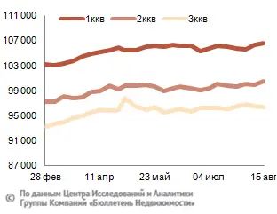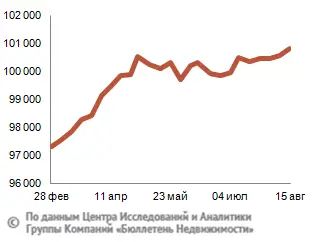 За минувший период изменение средней цены предложения на вторичном рынке квартир в рублевом эквиваленте составило 0,3%, это 253,3 руб. с кв. м. Показатель средней цены предложения за неделю с 08 августа по 15 августа 2014 года составил 100,8 тыс. руб. за кв. м. Цена предложения в долларах – 2,8 тыс. за кв. м, в евро – 2,1 тыс. за кв. м.