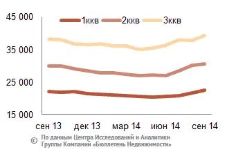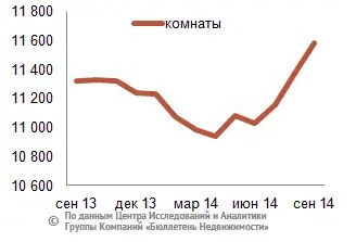 Стоимость аренды трехкомнатных квартир в Петербурге на конец месяца составила 39,2 тыс. руб. в месяц, что на 3,8% выше, чем в августе 2014 года. Средняя цена предложения комнат повысилась на 1,8%, стоимость аренды в месяц составила 11,6 тыс. руб.