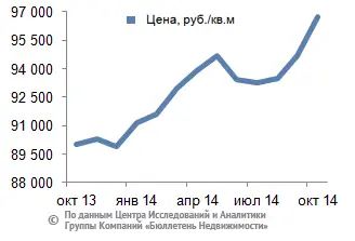 Самыми дешевыми вариантами по стоимости квадратного метра остаются трехкомнатные квартиры в домах панельной постройки. На конец сентября 2014 года средняя цена предложения составила 82,6 тыс. руб. за кв. м жилья.