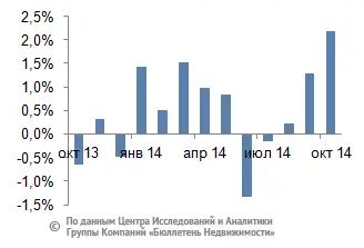 За прошедший месяц на рынке новостроек изменение стоимости одно-, двух- и трехкомнатных квартир в кирпично-монолитных домах составило 2,9%, 3,2% и 1,8% соответственно. Изменение стоимости квадратного метра в панельных домах по отношению к августу 2014 года составило для однокомнатных квартир – минус 4,9%, для двухкомнатных – минус 1,9%, для трехкомнатных квартир – минус 4,5%.