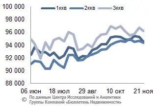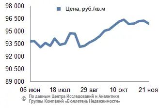 За минувший период изменение средней цены предложения на рынке новостроек в рублевом эквиваленте составило минус 0,4%, это 351,3 руб. с кв. м. Показатель средней цены предложения за неделю с 14 ноября по 21 ноября 2014 года – 95,9 тыс. руб. за кв. м. Стоимость предложения в долларах – 2,1 тыс. за кв. м, в евро – 1,6 тыс. за кв. м.