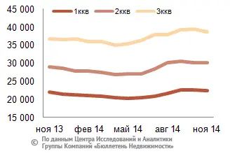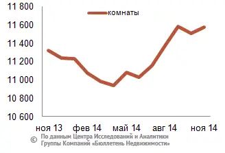 Стоимость аренды трехкомнатных квартир в Петербурге на конец месяца составила 38,7 тыс. руб. в месяц, что на 1,6% ниже, чем в октябре 2014 года. Средняя цена предложения комнат повысилась на 0,6%, стоимость аренды в месяц составила 11,6 тыс. руб.