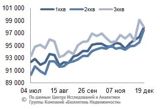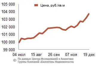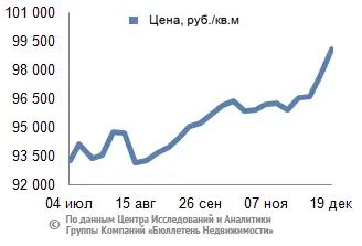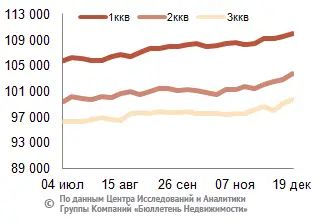 За минувший период изменение средней цены предложения на рынке новостроек в рублевом эквиваленте составило 1,4%, это 1361,5 руб. с кв. м. Показатель средней цены предложения за неделю с 12 декабря по 19 декабря 2014 года – 99,1 тыс. руб. за кв. м. Стоимость предложения в долларах – 1,7 тыс. за кв. м, в евро – 1,4 тыс. за кв. м.