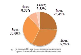 В структуре предложения на вторичном рынке квартир по-прежнему преобладают одно-, двух- и трехкомнатные квартиры, они составили в феврале 2015 года 88,3% рынка, многокомнатные – в среднем 11,7% от общего объема.