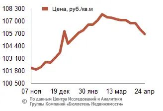 За минувший период изменение средней цены предложения на вторичном рынке квартир в рублевом эквиваленте составило минус 0,5%, это 550,3 руб. с кв. м. Показатель средней цены предложения за неделю с 17 по 24 апреля 2015 года составил 105,6 тыс. руб. за кв. м. Цена предложения в долларах – 2 тыс. за кв. м, в евро – 1,9 тыс. за кв. м.