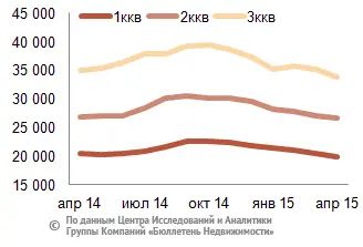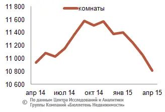 Стоимость аренды трехкомнатных квартир в Петербурге на конец месяца составила 33,9 тыс. руб. в месяц, что на 3,9% ниже, чем в марте 2015 года. Средняя цена предложения комнат понизилась на 2,2%, стоимость аренды в месяц составила 10,8 тыс. руб.