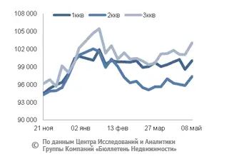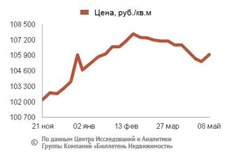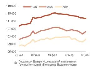 За минувший период изменение средней цены предложения на вторичном рынке квартир в рублевом эквиваленте составило 0,6%, это 581,6 руб. с кв. м. Показатель средней цены предложения за неделю с 01 по 08 мая 2015 года составил 106 тыс. руб. за кв. м. Цена предложения в долларах – 2,1 тыс. за кв. м, в евро – 1,9 тыс. за кв. м.