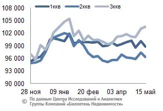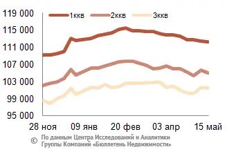 За минувший период изменение средней цены предложения на вторичном рынке квартир в рублевом эквиваленте составило минус 0,1%, это 87,5 руб. с кв. м. Показатель средней цены предложения за неделю с 08 по 15 мая 2015 года составил 105,9 тыс. руб. за кв. м. Цена предложения в долларах – 2,1 тыс. за кв. м, в евро – 1,9 тыс. за кв. м.