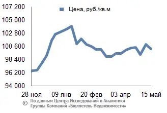 За минувший период изменение средней цены предложения на рынке новостроек в рублевом эквиваленте составило минус 0,8%, это 782,2 руб. с кв. м. Показатель средней цены предложения за неделю с 08 по 15 мая 2015 года – 100,2 тыс. руб. за кв. м. Стоимость предложения в долларах – 2 тыс. за кв. м, в евро – 1,8 тыс. за кв. м.