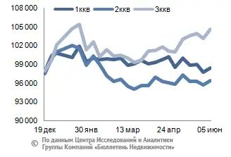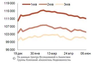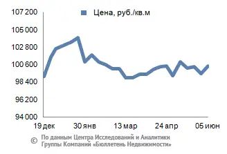 За минувший период изменение средней цены предложения на рынке новостроек в рублевом эквиваленте составило 1%, это 993,4 руб. с кв. м. Показатель средней цены предложения за неделю с 29 мая по 05 июня 2015 года – 100,5 тыс. руб. за кв. м. Стоимость предложения в долларах – 1,8 тыс. за кв. м, в евро – 1,6 тыс. за кв. м.