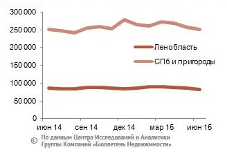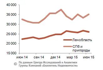 Изменение стоимости домостроений (без учета стоимости земли) за месяц составило минус 2,3% по Ленинградской области и 5,7% по Петербургу и пригородным районам. На конец июня 2015 года средняя цена предложения домостроений по области составила 26,1 тыс. руб. за кв. м (в среднем 3,1 млн руб. за объект), по районам Петербурга и пригородам – 35,2 тыс. руб. за кв. м (в среднем 5,2 млн руб. за строение, без учета стоимости участка).