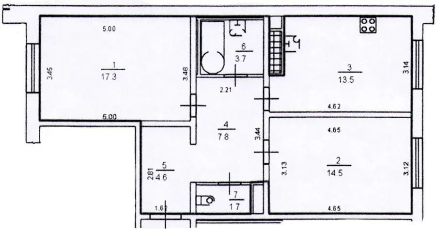 3. Четырехкомнатная квартира в Московском районе площадью 107,4 кв. м (5-й Предпортовый проезд, 12/1)