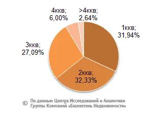 В структуре предложения на вторичном рынке квартир по-прежнему преобладают одно-, двух- и трехкомнатные квартиры, они составили в июле 2015 года 91,4% рынка, многокомнатные – в среднем 8,6% от общего объема.