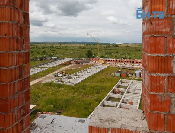 Заметим, что строительство ЖК «Дважды два» ведется довольно быстро. В прошлый наш приезд мы обнаружили на площадке лишь одинокого охранника, а по соседству - несколько полуразвалившихся построек. Сейчас от ветхих домов не осталось и следа, два корпуса новостройки доведены до уровня седьмого этажа (всего этажей будет девять), а рабочих и техники на стройке - в достатке.