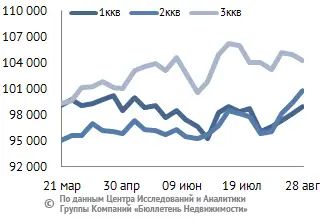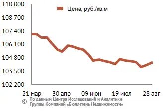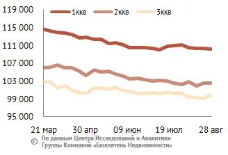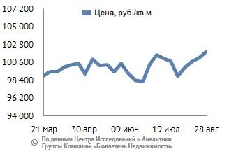 За минувший период изменение средней цены предложения на рынке новостроек в рублевом эквиваленте составило 0,7%, это 720,2 руб. с кв. м. Показатель средней цены предложения за неделю с 21 августа по 28 августа 2015 года – 101,9 тыс. руб. за кв. м. Стоимость предложения в долларах – 1,5 тыс. за кв. м, в евро – 1,3 тыс. за кв. м.