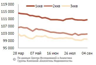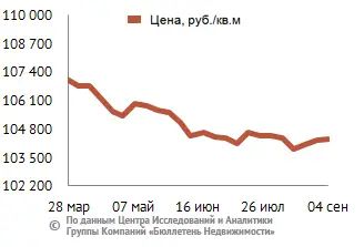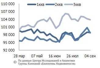 За минувший период изменение средней цены предложения на вторичном рынке квартир в рублевом эквиваленте составило 0,02%, это 18,5 руб. с кв. м. Показатель средней цены предложения за неделю с 28 августа по 04 сентября 2015 года составил 104,3 тыс. руб. за кв. м. Цена предложения в долларах – 1,6 тыс. за кв. м, в евро – 1,4 тыс. за кв. м.