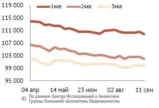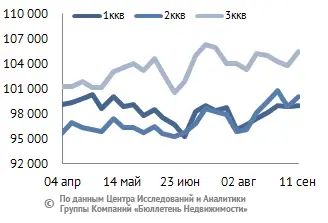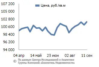 За минувший период изменение средней цены предложения на рынке новостроек в рублевом эквиваленте составило 0,8%, это 823 руб. с кв. м. Показатель средней цены предложения за неделю с 04 сентября по 11 сентября 2015 года – 102 тыс. руб. за кв. м. Стоимость предложения в долларах – 1,5 тыс. за кв. м, в евро – 1,3 тыс. за кв. м.