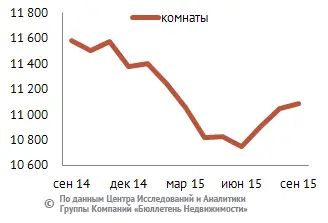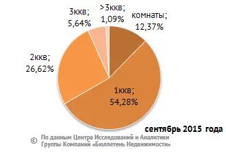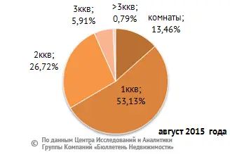 В структуре предложения на рынке аренды типового жилья в сентябре 2015 года по-прежнему преобладают комнаты и однокомнатные квартиры, занимая соответственно 29,9 и 41,2% рынка. Двухкомнатные квартиры составляют 21,9%, доля трехкомнатных не превышает 6,3%. Многокомнатные (четыре комнаты и более) составляют 0,7% от общего объема типовых квартир, предлагаемых в аренду.