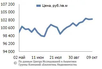 За минувший период изменение средней цены предложения на рынке новостроек в рублевом эквиваленте составило 0,1%, это 112 руб. с кв. м. Показатель средней цены предложения за неделю с 02 октября по 09 октября 2015 года – 103,1 тыс. руб. за кв. м. Стоимость предложения в долларах – 1,7 тыс. за кв. м, в евро – 1,5 тыс. за кв. м.
