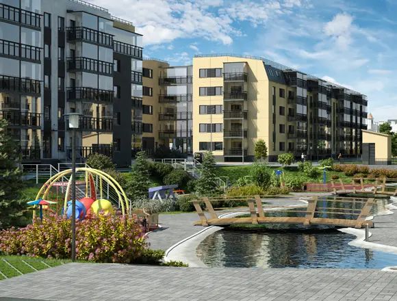 Детский сад, школа, магазины, спортплощадки – все это находится на территории квартала. Дворы здесь закрыты от автомобилей и посторонних. Продуманы до мелочей и планировки квартир: в них нет бесполезных метров, узких коридоров и неудобных комнат.