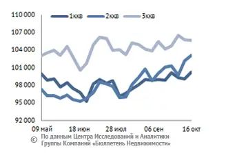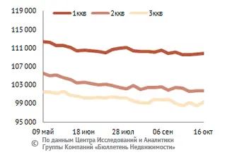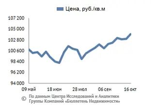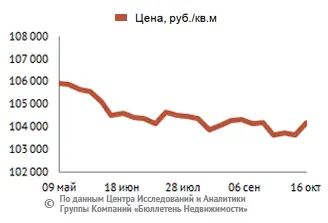 За минувший период изменение средней цены предложения на рынке новостроек в рублевом эквиваленте составило 0,9%, это 893 руб. с кв. м. Показатель средней цены предложения за неделю с 09 октября по 16 октября 2015 года – 104 тыс. руб. за кв. м. Стоимость предложения в долларах – 1,7 тыс. за кв. м, в евро – 1,5 тыс. за кв. м.