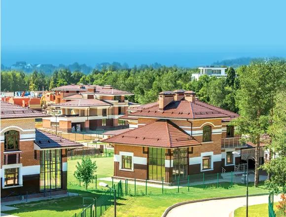Коттеджный поселок занимает территорию площадью 15 га, окруженную живописными лесами. Сегодня в комплексе возведено 130 домовладений, построенных по традиционной технологии кирпичного домостроения: коттеджи с участками от 8 до 25 соток, таунхаусы и дуплексы с участками от 2 до 4,5 сотки. Каждый коттедж выполнен в классическом или современном архитектурном стиле с учетом индивидуальных пожеланий покупателя.