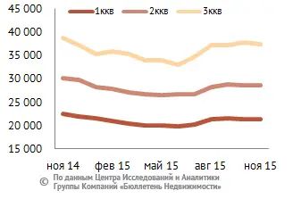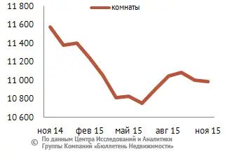Стоимость аренды трехкомнатных квартир в Петербурге на конец месяца составила 37,4 тыс. руб. в месяц, что на 0,8% ниже, чем в октябре 2015 года. Средняя цена предложения комнат понизилась на 0,2%, стоимость аренды в месяц составила 11 тыс. руб.