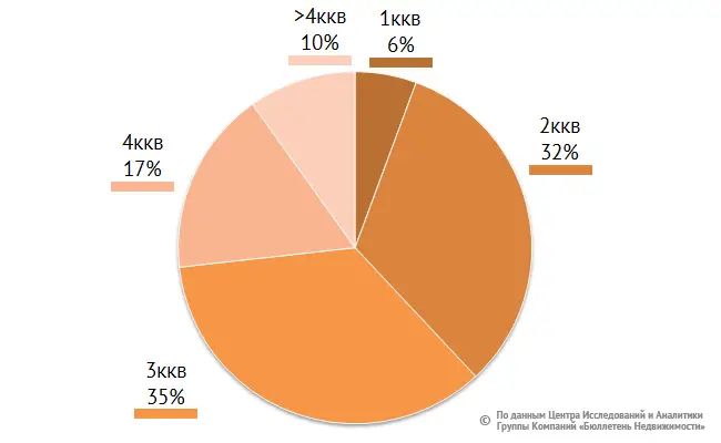 Больше всего на рынок выставлено «двушек» и «трешек» – 32% и 35% соответственно, еще почти 30% приходится на квартиры с четырьмя и более комнатами. А вот «однушек» в Аптекарском явный дефицит – не более 6% всего предложения.