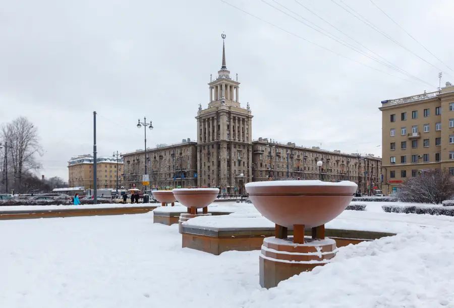 Последний объект нашей экскурсии – так называемые дома-пластины на Площади Победы (Московский пр., 207, 222). Их строили в разгар брежневского застоя, тем не менее, подчеркнутая симметрия делает их логичным завершением сталинского ансамбля Московского проспекта. Обозначенные высотки – своего рода прототип современных жилых зданий эконом-класса: все квартиры в них однокомнатные – от 30 до 33 кв. м.