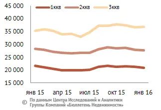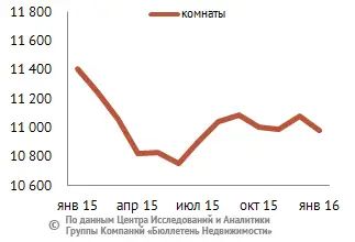 Стоимость аренды трехкомнатных квартир в Петербурге на конец месяца составила 36,8 тыс. руб. в месяц, что на 0,7% выше, чем в декабре 2015 года. Средняя цена предложения комнат понизилась на 0,9%, стоимость аренды в месяц составила 11 тыс. руб.