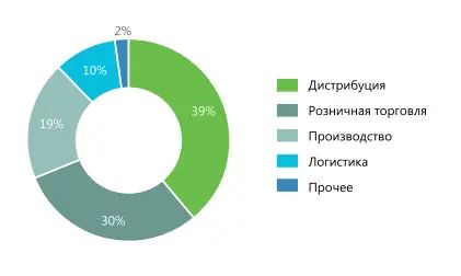 Структура арендаторов практически не изменилась: около 65% спроса сформировано арендаторами из торговых и дистрибуторских компаний, чуть менее 20% складов занимает логистика, и замыкает тройку лидеров производственный сектор, за год заметно увеличивший свою долю – менее чем с 10% до 15%.