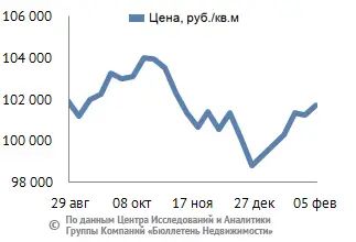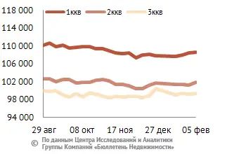Доля объектов, цена которых меньше 75 тыс. руб. за кв. м, составляет 6,7% от общего объема предложения квартир, . Большую долю рынка занимают цены диапазона от 85 до 105 тыс. руб. за кв. м, что составляет 40,4% от объема выставленных на продажу квартир. Диапазон стоимости квадратного метра от 105 до 125 тыс. руб. занимает 21,7%. Доля дорогих объектов, цена которых превышает 125 тыс. руб. за кв. м, – 14,3% от всего предложения.