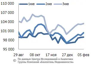 | Цена по типу квартир, руб/кв. м |