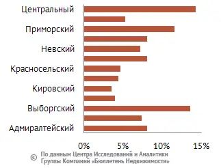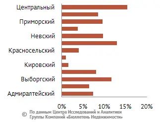 Больше всего объектов торговли и сферы услуг сегодня выставлено в аренду в Центральном, Приморском, Московском и Выборгском районах Петербурга, а в тройке районов-аутсайдеров находятся Красногвардейский, Кировский и Красносельский.