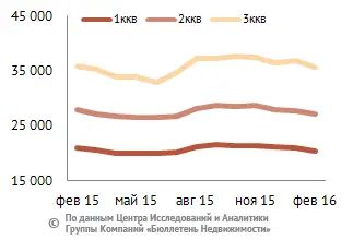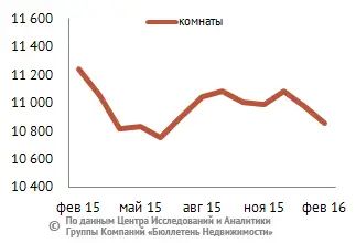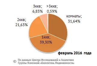 В структуре предложения на рынке аренды типового жилья в феврале 2016 года по-прежнему преобладают комнаты и однокомнатные квартиры, занимая соответственно 31,6 и 39,3% рынка. Двухкомнатные квартиры составляют 21,6%, доля трехкомнатных не превышает 6,8%. Многокомнатные (четыре комнаты и более) составляют 0,6% от общего объема типовых квартир, предлагаемых в аренду.