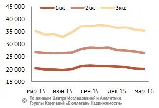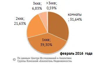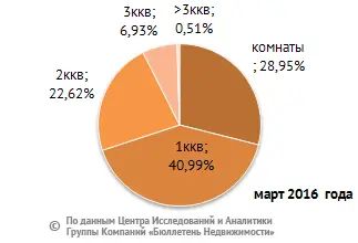 В структуре предложения на рынке аренды типового жилья в марте 2016 года по-прежнему преобладают комнаты и однокомнатные квартиры, занимая соответственно 29% и 41% рынка. Двухкомнатные квартиры составляют 22,6%, доля трехкомнатных не превышает 6,9%. Многокомнатные (четыре комнаты и более) составляют 0,5% от общего объема типовых квартир, предлагаемых в аренду.